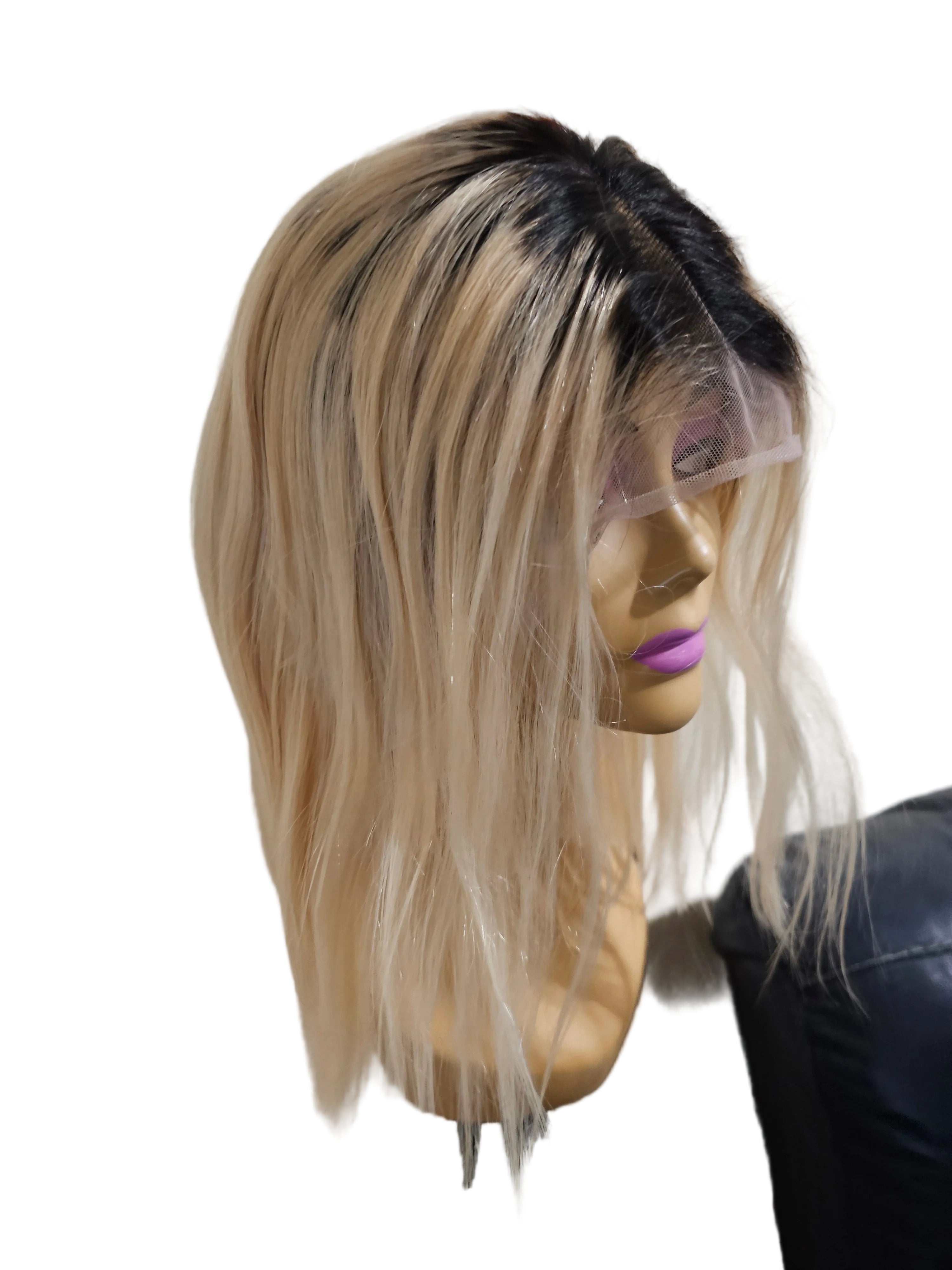 Stunning blonde ombre bob wig featuring a seamless transition from dark roots (1B) to platinum blonde (613). This premium 13×4 lace frontal wig offers a natural-looking hairline and versatile styling options.